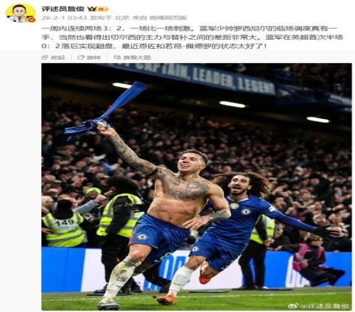 当恩佐在补时第92分钟,将若昂·佩德罗的倒三角回传轰入西汉姆联球门时,斯坦福桥球场的声浪仿佛要掀翻顶棚。从0-2到3-2,切尔西在英超历史上57次半场落后至少两球的绝境中,首次完成了不可思议的逆转。这不仅仅是三分,也是罗塞尼尔对粉丝们的宣誓,他的确是有实力的新帅。正如赛后,社媒发文夸赞这新帅的詹俊谈到:那支以铁血意志和永不放弃精神著称的蓝军,带着昔日的斗志模式,正式回归。
